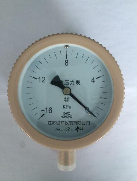 不銹鋼膜盒壓力表參照原膜盒壓力表的結構特點而研制的具有耐腐蝕作用的微壓表。應用于鍋爐通風和氣體管道等設備上,在耐腐要求較高的工藝流程中測量各種氣體介質的微壓和負壓。準確度等級:2.5