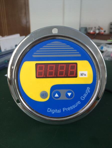 數字遠傳壓力表為全電子結構,前端采用帶隔離膜充油壓阻式壓力傳感器,輸出信號由高準確度,低溫漂的放大器放大處理,送入高準確度的A/D轉換器,轉換成微處理器可以處理的數字信號,經過運算處理,由LED顯示器顯示出實際的壓力值。