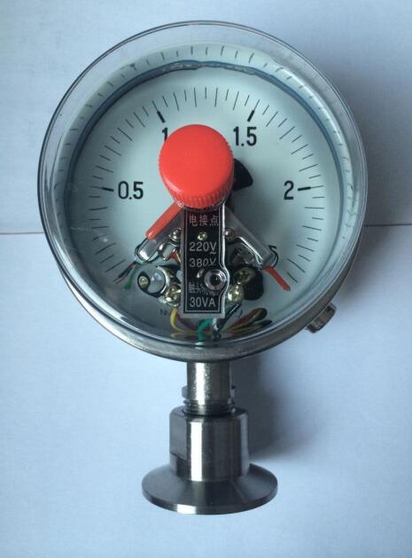 YHYXTP-100/150卡箍衛生型電接點隔膜壓力表具有裝拆快捷方便,易于清洗,不易污染,清潔美觀,安全可靠等優點。并滿足藥品生產質量規范(GMP)的要求,可廣泛應用于制藥、食品、飲料、制酪、水處理等行業