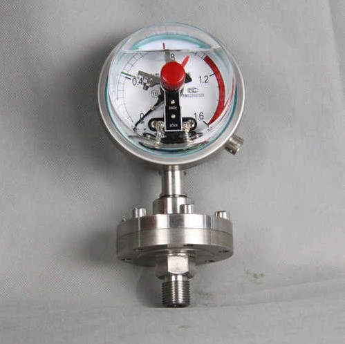不銹鋼耐震電接點隔膜壓力表主要用于石油化工、制堿、化纖、染化、制藥、食品和制酪等工業部門生產過程中測量流體介質壓力之用