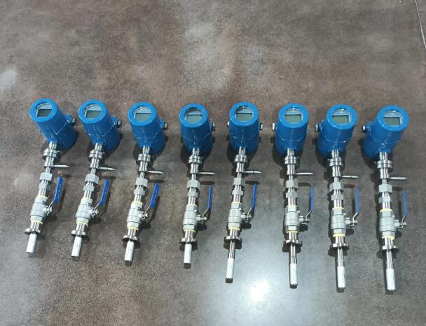 插入式熱式氣體質量流量計是氣體流量計量中新型儀表,區別于其它氣體流量計不需要進行壓力和溫度修正,直接測量氣體的質量流量,一支傳感器可以做到量程從極低到高量程。它適合單一氣體和固定比例多組份氣體的測量。它依據的原理是流體吸收熱的速度直接與質量流量相關。移動的氣體分子撞擊熱電阻時吸收帶走熱量,流率越大,接觸熱電阻的分子越多,吸收的熱量越多,熱吸收與某種氣體的分子數,熱學特性和流動特性有關,利用這一原理,并依托大量的先進技術,我們開發出了可靠性高、抗污染、穩定性的氣體質量流量計。