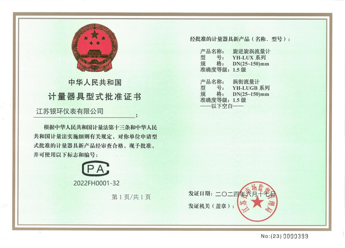 渦街流量計生產許可