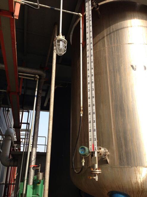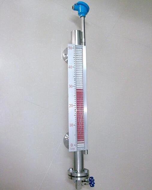 在磁性浮子液位計(jì)上安裝變送器。變送器由傳感器和轉(zhuǎn)換器兩部分組成,它通過(guò)磁浮子上下移動(dòng),經(jīng)磁耦合作用使導(dǎo)管內(nèi)測(cè)量元件依次動(dòng)作,獲得電阻信號(hào)變化,傳喚成0~10或4~20mA的標(biāo)準(zhǔn)電流信號(hào)輸出,以便與數(shù)字顯示儀表或計(jì)算機(jī)聯(lián)接,實(shí)現(xiàn)遠(yuǎn)傳顯示及控制