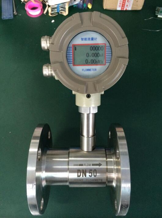 渦輪流量計(jì)的工作原理是通過(guò)在管道中安裝一個(gè)渦輪,兩邊由軸承加以支撐。在流體經(jīng)過(guò)管道時(shí),沖擊渦輪的葉片,沖擊力對(duì)渦輪產(chǎn)生驅(qū)動(dòng)力矩,使渦輪克服磨擦力矩產(chǎn)生旋轉(zhuǎn)。在一定的流量范圍內(nèi),對(duì)一定的流體介質(zhì)粘度,渦輪的旋轉(zhuǎn)角速度與流體流速成正比。由此,流體流速可通過(guò)渦輪的旋轉(zhuǎn)角速度得到,以此便能通過(guò)計(jì)算得到通過(guò)管道的流體流量。